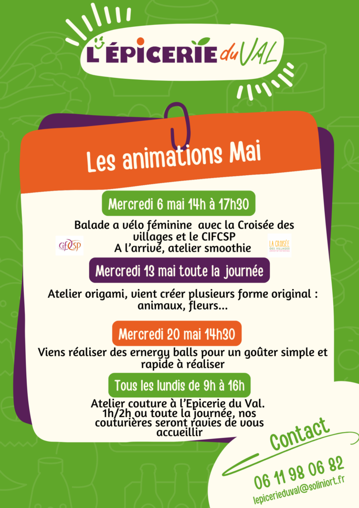 L’épicerie n’est pas seulement un commerce, c’est bien plus : c’est un lieu qui crée du lien social. Nous y offrons café et thé, et proposons des ateliers et animations pour tous : cuisine, atelier créatif, sophrologie, couture…